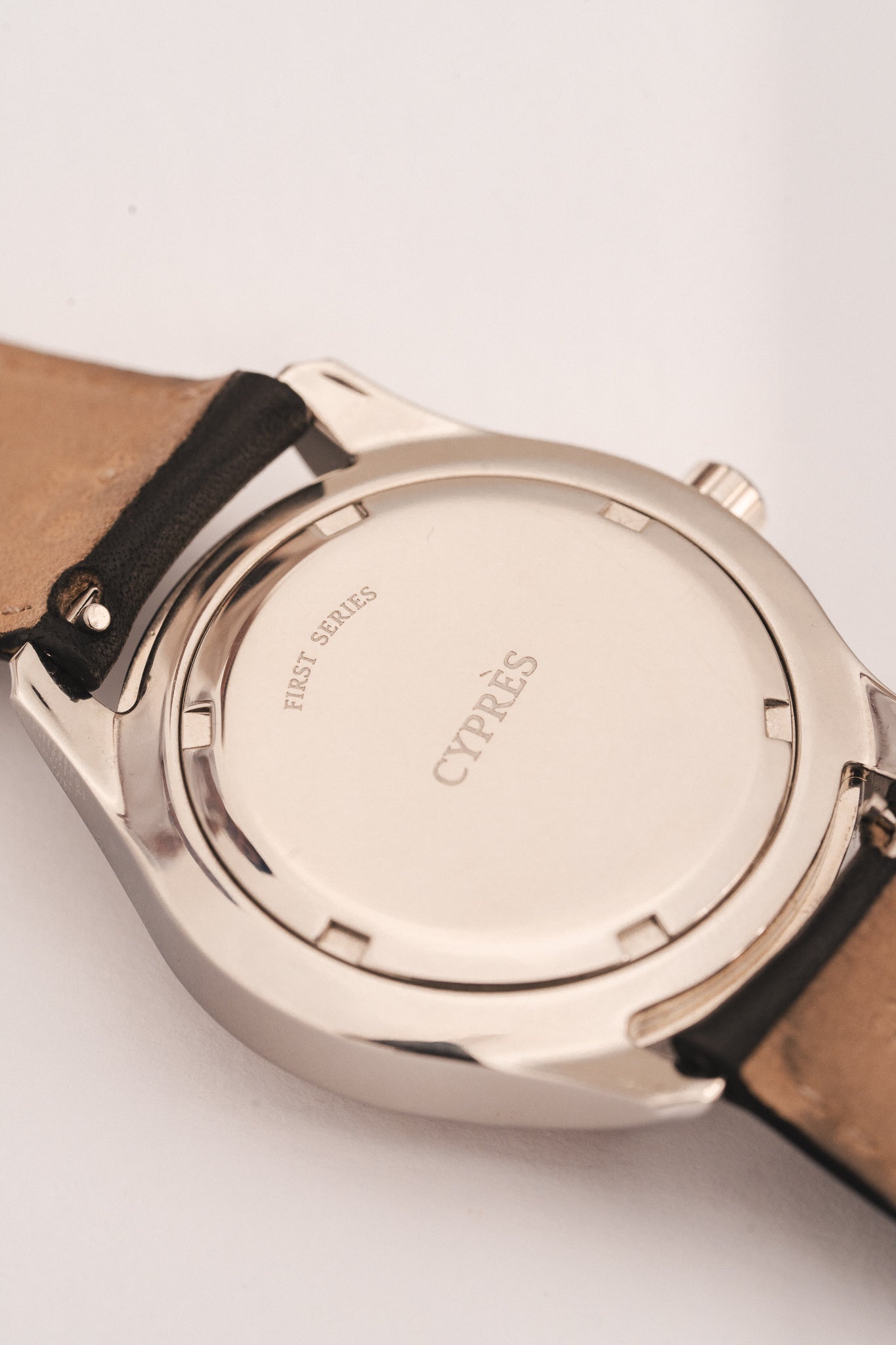 The Cyprès comes with a premium leather strap crafted in Besançon, France, by Bouveret, embodying the elegance of French artisanal tradition.
